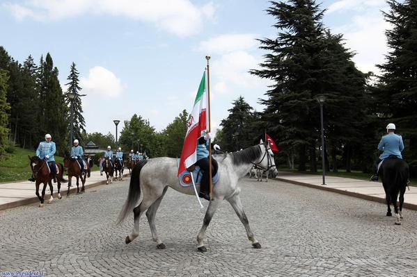 در مراسم استقبال امروز از رجب طیب اردوغان چند اسب سوار هم با در دست داشتن پرچم هایی دیده می شدند که بی سابقه بود اما علت اصلی این اقدام عمل متقابل جمهوری اسلامی ایران در پروتکل های تشریفاتی بوده است.