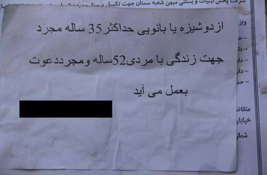 یک مرد ۵۲ ساله با چسباندن اطلاعیه در معابر اصلی شهر و نوشتن شرایط همسر مورد نظر با روشی عجیب اقدام به خواستگاری کرده است.