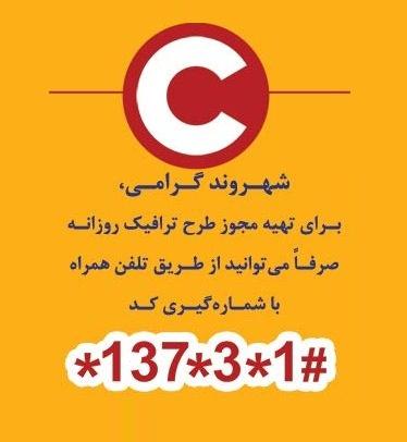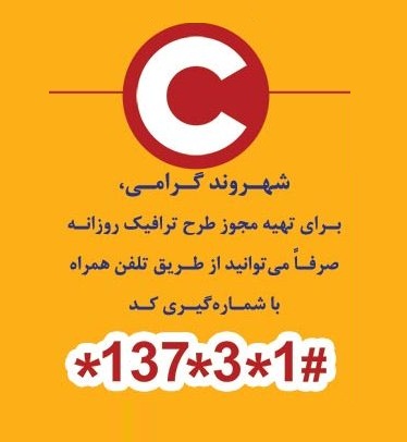 شهرداری تهران در راستای توسعه خدمات الکترونیکی، فروش آرم طرح ترافیک روزانه را با استفاده از کد دستوری *۱۳۷# از طریق تلفن همراه ممکن ساخت.