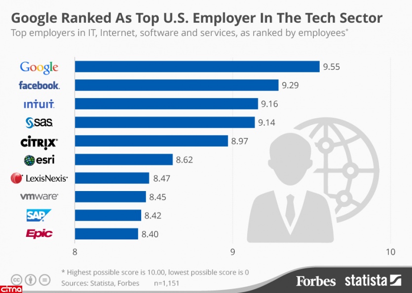 در پژوهشی که «فوربس» و «استاتیستا» بر روی 20 هزار کارمند در شرکتهای بزرگ و کوچک و نهادهای غیر انتفاعی و همچنین آژانسهای مختلف آمریکایی صورت داده اند، این سوال پرسیده شده است که از 0 تا 10 به شرکتی که در آن مشغول به کار هستند چه امتیازی میدهند و به این ترتیب مشخص ساخته اند که کدام شرکت بهترین شرکت اشتغالزا در کل آمریکا در سال 2015 است.