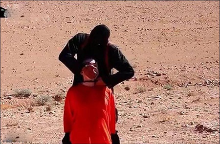 قصاب داعش در پاسخ نیز اعلام کرده: من چندی پیش یک علوی طاس را سربریدم که بسیار سخت بود.