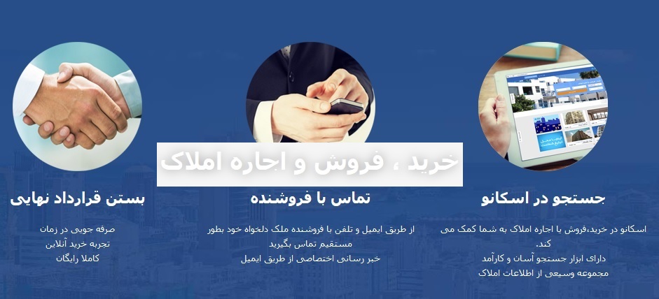 اسکانو، نخستین بانک اطلاعات املاک ایران با استانداردهای جهانی است. وب سایت اسکانو، با ارائه خدمات رایگان به دفاتر مشاورین املاک، خریداران و فروشندگان ملک، یکی از فعال‌ترین وب‌سایت‌ها در این حوزه است. اسکانو سعی دارد با ایجاد زیرساخت‌های لازم گام موثری در بهبود زندگی روزمره مردم ایران و بهره‌برداری از امکانات موجود در فضای مجازی بردارد. می‌توانید برای اطلاعات بیشتر به www.Eskano.com مراجعه کنید.