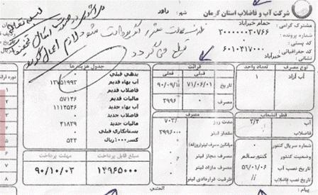 یکی از مشترکان آب در یکی از مناطق خیرآباد راور مدعی است سی سال پس از نصب اشتراک آب، برای اولین بار قبض آب بهای خود را دریافت کرده است.
