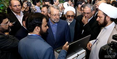 بازدید رئیس مجلس از نمایشگاه تجهیزات و خدمات ارتباطی استان قم (+عکس)