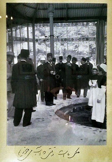 عکسی از ناصرالدین شاه هنگام سفر به وین و احتمالا در یک آبخوری عمومی که در موزه کاخ گلستان به نمایش گذاشته شده است.