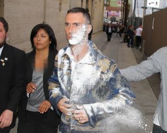 چهارشنبه شب گذشته، آدام لوین، خواننده ۳۶ ساله و لید گروه مارون فایو، که در سال ۲۰۱۳ از سوی مجله پیپل به عنوان جذاب ترین مرد زنده دنیا لقب گرفت، وقتی داشت از تاک شوی جیمی کیمل برمیگشت و به طرفدارانش امضا می داد، توسط فردی مورد حمله قرار گرفته و بسته ای پودر سفید به سر و صورتش ریخت.