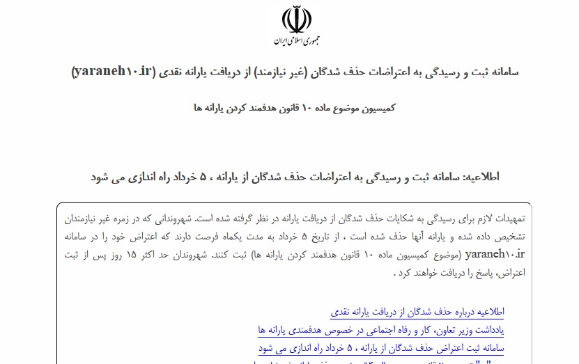 سامانه ثبت و رسیدگی به اعتراضات حذف شدگان یارانه نقدی