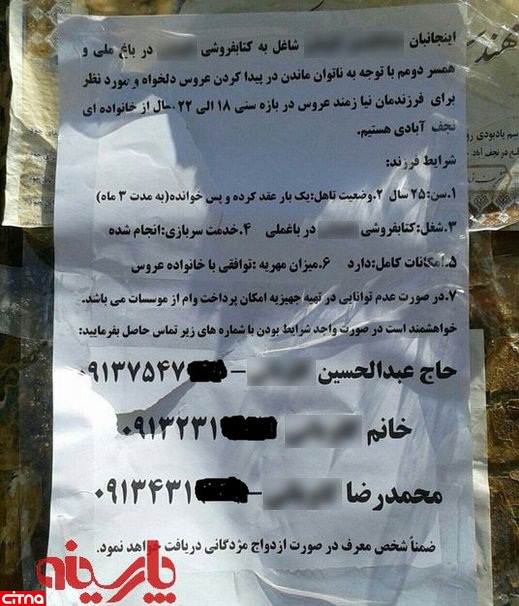 عکس زیر، آگهی متفاوتی است برای پیدا کردن عروس مناسب برای یک پسر جوان!