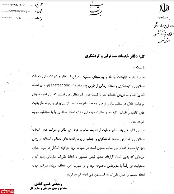 طبق بخشنامهای خطاب به کلیه دفتر خدمات مسافرتی و گردشگری، تاکید شده است که نحوه فروش تورها در وب سایت های مشهوری مانند LastSecond.ir با قیمت های غیرمنطقی، باعث اخلال در تنظیم بازار و زمینه ساز رقابت های کاذب و ناسالم شده و فعالیت حرفه ای دفاتر را با مخاطره مواجه می کند.