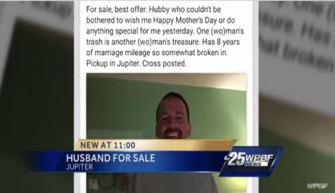 این زن به همراه عکسی از شوهرش و زیر عنوان شوهری برای فروش، آگهی حراج همسرش به مبلغ بیست دلار را منتشر کرده است.