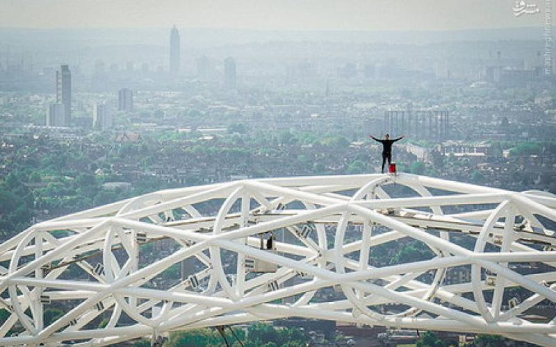 «جیمز کینگستون» کوهنورد و بدلکار 24 ساله برای اولین بار در دنیا بدون تجهیزات از سازه 440 فوتی غرب لندن بالا رفت.