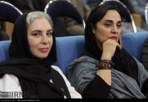 رویا نونهالی بازیگر (سمت راست) و افسانه بایگان (سمت چپ) بازیگر شامگاه شنبه در ضیافت افطار اصحاب فرهنگ و هنر با رییس جمهور در سالن اجلاس سران حضور داشتند.
