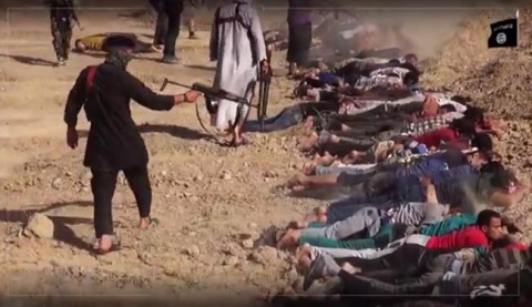 فیلم جدید داعش که 23 دقیقه است ، نشان می دهد که صدها دانشجوی دست بسته در کنار هم به صورت فشرده جمع شده اند، و عوامل داعش با سلاح کمری و یا کلاشینکف آنها را می کشند.