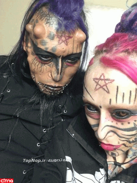 به گزارش سیتنا، این تصاویر مربوط به یکی از دختران شیطان پرست است که جراحی ها و خالکوبی های عجیب و غریبی روی سر و صورت و دستهای خود انجام داده و خود را به این قیافه وحشتناک درآورده است.