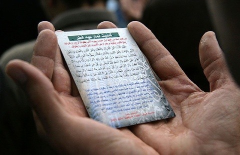 طبق روایتی از امام صادق (ع) پس از خواندن نماز مغرب و نافله آن، دستها را به سوی آسمان بلند کند و بگوید: