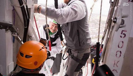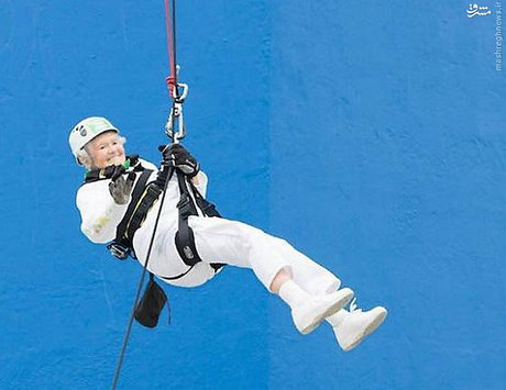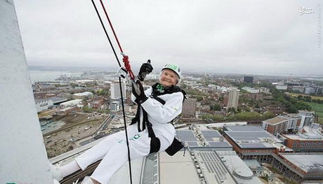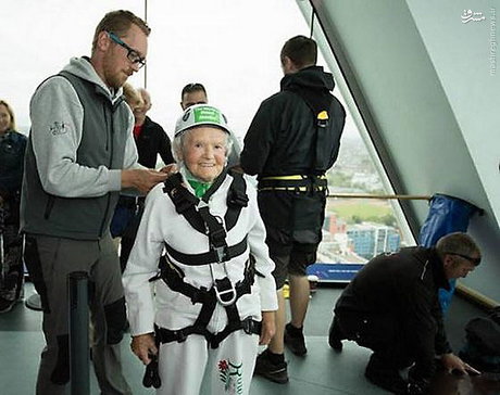 پیرزن ورزشکار 101 ساله انگلیسی از یک برج بلند بالا رفت و با طناب محافظ از آن پایین آمد.