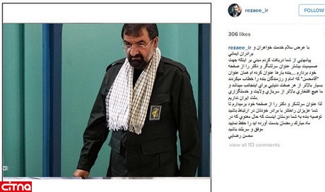 به گزارش سیتنا به نقل از جماران، محسن رضایی در صفحه اینستاگرام خود نوشت: «با عرض سلام خدمت خواهران و برادران ایمانی. پیامهایی از شما دریافت کردم مبنی بر اینکه جهت صمیمیت بیشتر عنوان سرلشگر و دکتر را از صفحه خود بردارم ... بنده بارها عنوان کردهام همان عنوان «آقامحسن» که امام و رزمندگان بنده را خطاب میکردند بسیار بالاتر از هر صفت دنیایی برای اینجانب میباشد و ما هیچ افتخاری بالاتر از سربازی ولایت و خدمتگزاری ملت ایران نداریم. لذا عنوان سرلشکر و دکتر را از صفحه خود برمیدارم تا شما عزیزان راحتتر با برادر خودتان در ارتباط باشید. توصیه بنده به شما دوستان این است که حال معنوی که در ماه مبارک رمضان بدست آوردهاید را حفظ نمایید. موفق و سربلند باشید. محسن رضایی»