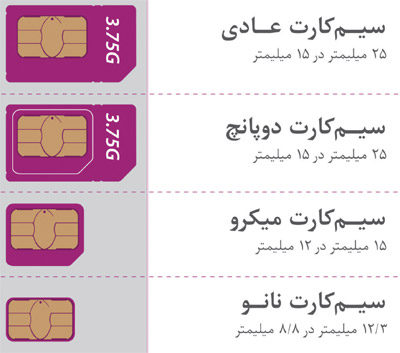 تنوع سیمکارت رایتل متناسب با گوشیهای مختلف؛ عادی، دوپانچ، میکرو و نانو