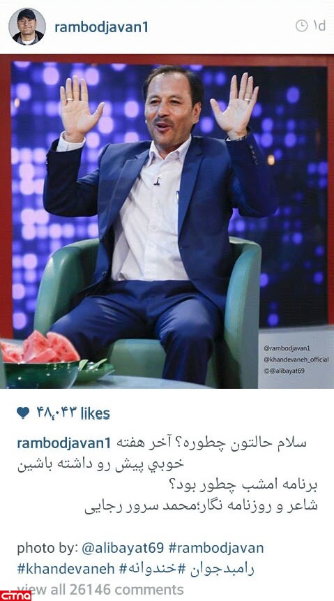 تصویر فوق آخرین پست صفحه مجازی رامبد جوان مجری خندوانه بود که ظاهرا بدلیل توهین ها و فحاشی های فراوان حذف شد