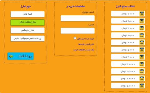 برای خرید شارژ همراه اول، ایرانسل و رایتل در حالت عادی و شگفت انگیز در مبالغ 1000 تا 50000 تومان همچنین خرید شارژ وایمکس و پرداخت قبوض سیم کات دائمی می توانید اینجا کلیک کنید و یا به لینک زیر وارد شوید: