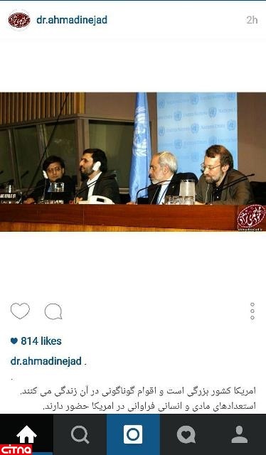پست اینستاگرامی احمدی نژاد از کنفرانس نیویورک