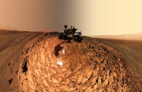 به تازگی مریخ نورد کنجکاوی در حین انجام عملیات حفاری در مریخ و درحالی که بازوی مکانیکی خود را به نزدیک سطح این سیاره رسانده بود تصویر سلفی نیز از خود گرفته که در آن بخشهای تشکیل دهنده این روبات بزرگتر از اندازه واقعی به نظر می رسد.