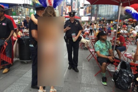 میدان تایمز نیویورک که یکی از شلوغترین مکانهای توریستی جهان به شمار میرود، در هفتههای اخیر به محلی برای خودنمایی زنان تقریبا برهنهای تبدیل شده که بدنهای خود را اغلب به رنگ پرچم ایالات متحده نقاشی کردهاند.