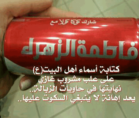 اخیرا شرکت کوکاکولا در اقدامی موهن و اهانت آمیز نام مبارکه حضرت زهرا (س) را بر روی قوطی نوشابه حک کرده و با این اقدام، خشم شیعیان را برانگیخته است.