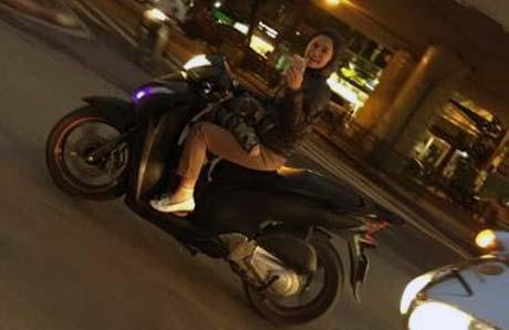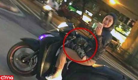 خانم راننده، کلاه ایمنی به سر ندارد، با یک دست در حال رانندگی است و نقطه اوج ماجرا این است که با تمامی این اوصاف، خانم راننده، نوزاد در حال خوابش را نیز روی موتور در حال رانندگی با دو پایش نگه داشته است.