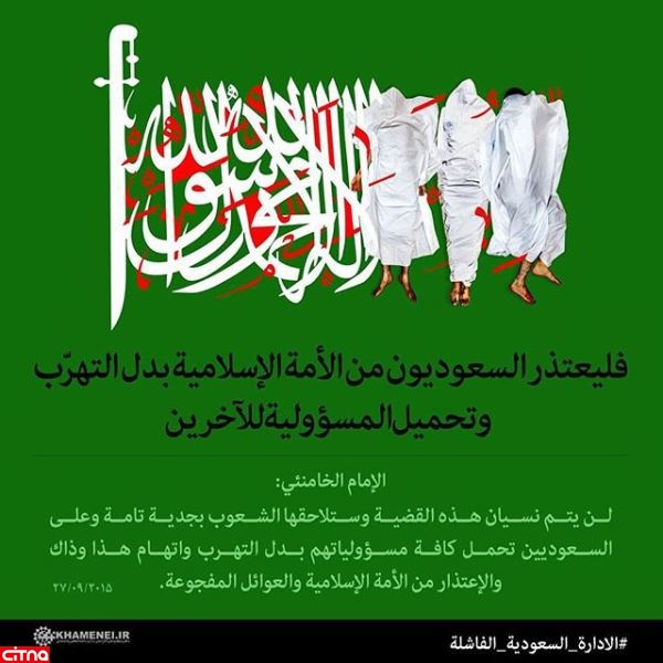 به گزارش سیتنا، صفحه اینستاگرام پایگاه اطلاع رسانی رهبر معظم انقلاب تصویر زیر را با این عبارت از مقام معظم رهبری منتشر و نوشته است: "این قضیه فراموش نخواهد شد و ملت ها به طور جدی آن را دنبال خواهند کرد و سعود یها نیز باید به جای فرافکنی و متهم کردن این و آن مسئولیت خود را بپذیرند و از امت اسلامی و خانواده های داغدار عذرخواهی کنند".