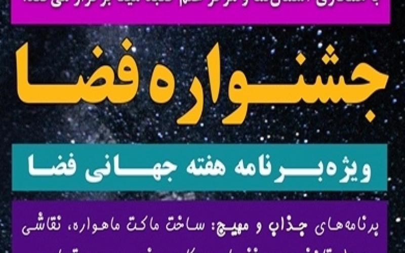 "جشنواره فضا" ویژه هفته جهانی فضا به همت پژوهشگاه فضایی ایران با برنامههای متنوع آموزشی در روزهای شانزدهم و هفدهم مهر ماه برگزار میشود.