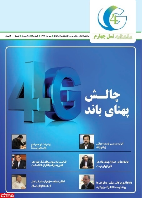 به گزارش سیتنا، ماهنامه تخصصی "نسل چهارم" با صاحب امتیازی و مدیرمسوولی مسعود فاتح و سردبیری مونا ارشادی فر در شماره نخست خود، موضوع پهنای باند در نسل های بالای تلفن همراه را مورد نقد و بررسی قرار داده است.