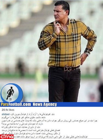 علی دایی در صفحه اینستاگرام خود به حضور غیرفوتبالیها در فوتبال کشور اعتراض و از حمایت حسن روحانی از تیم فوتسال بانوان تشکر کرد.