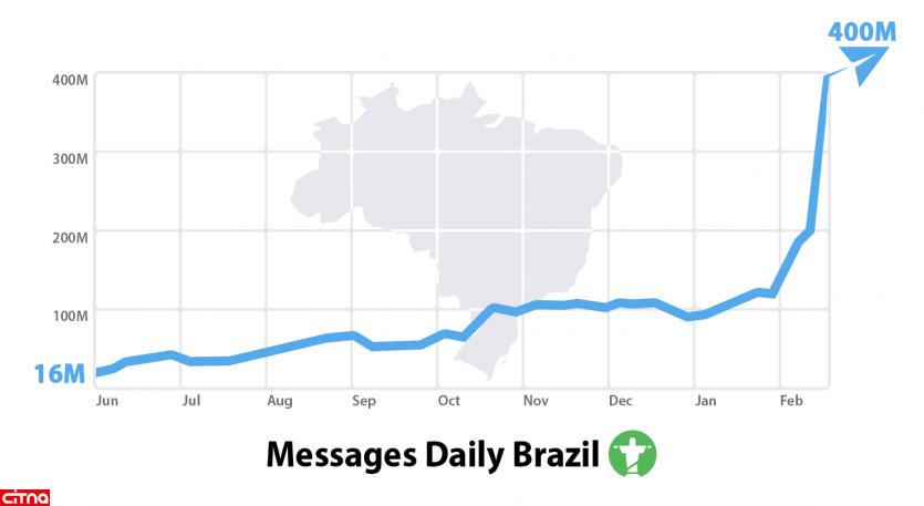 این نرم افزار نه تنها در ایران و روسیه به شدت مورد توجه کاربران قرار گرفته است، بلکه طبق آمار موجود در تمام قاره ها و کشورهای مختلف در حال اشاعه و استفاده است. به گونه ای که تنها در کشور برزیل، تعداد کاربران این نرم افزار به 4 میلیون رسیده است و روزانه برابر با 400 میلیون پیام از طریق این پیام رسان در این کشور تبادل می شود.