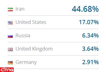 نگاهی به آمار تبادل اطلاعات با سرور اصلی تلگرام نشان می دهد، حدود 45 درصد از کل ترافیک انتقالی با این سرور از مسیر ایران، 17 درصد از ایالات متحده، 6 درصد از روسیه، 3 درصد از انگلستان و در حدود 3 درصد نیز از آلمان بوده است.