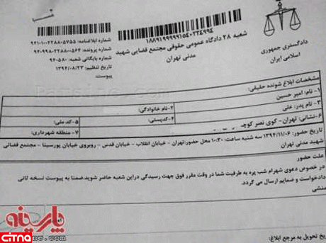 شکایتی که شب پره آن را تقدیم دادگاه عمومی در تهران کرده است را مشاهده می کنید!