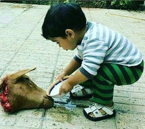به گزارش سیتنا، او با انتشار عکس زیر نوشته:"می خواستند سرش را ببرند. خودش این را می دانست. او معنی کاسه آب و چاقو را می فهمید. با مادرش هم همین کار را کردند. آبش دادند و سرش را بریدند.