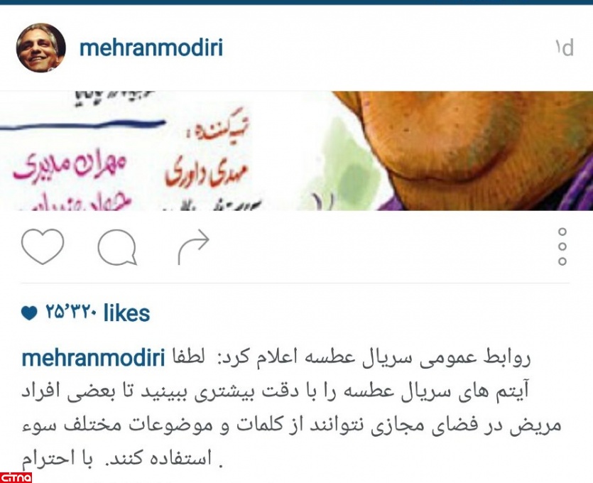 از آن سو صفحه مهران مدیری، این متن را منتشر کرد: