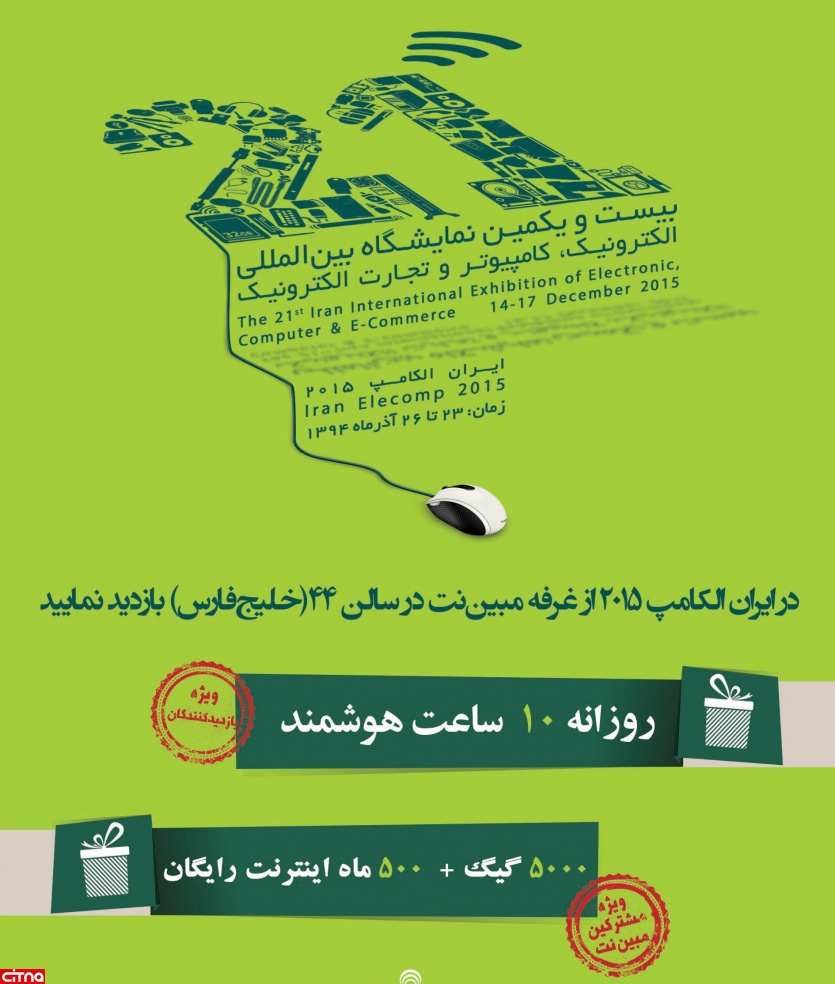 لازم به یادآوری است بیستویکمین نمایشگاه بینالمللی کامپیوتر، الکترونیک و تجارت الکترونیکی، ایران الکامپ 2015 از 23 تا 26 آذر ماه در محل دایمی نمایشگاههای بینالمللی تهران برگزار خواهد شد و مبیننت در سالن 44 (خلیج فارس) پذیرای بازدیدکنندگان خواهد بود.
