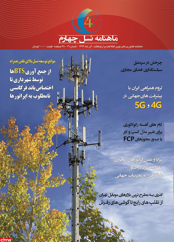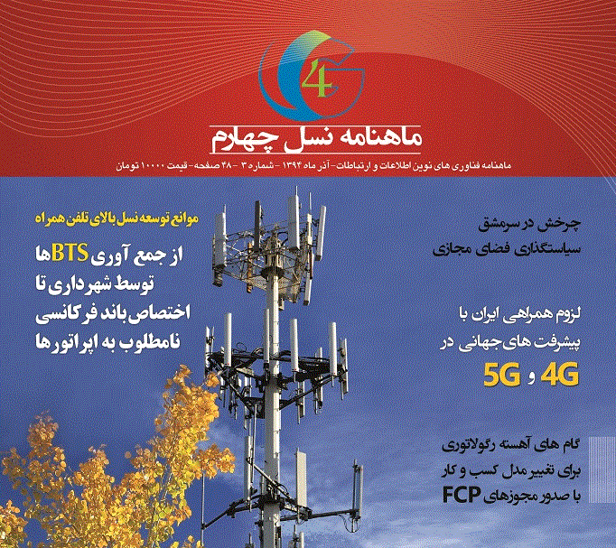 به گزارش سیتنا، سومین شمارهی ماهنامهی اختصاصی "نسل چهارم" با صاحب امتیازی و مدیرمسوولی مسعود فاتح و سردبیری مونا ارشادی فر در شمارهی آذر ماه 94 خود، به صورت ویژه موانع توسعهی شبکههای نسل چهارم تلفن همراه در کشور را مورد نقد و بررسی قرار داده است.