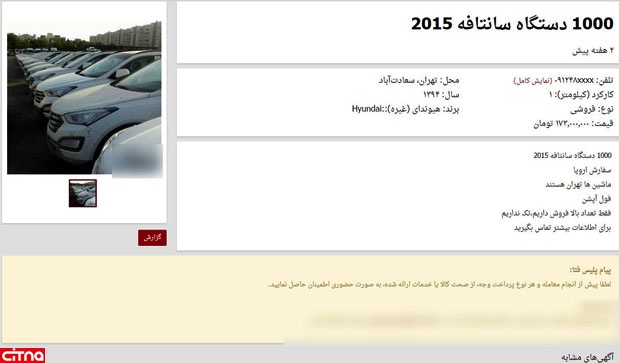 به گزارش سیتنا به نقل از قطار، یک سایت خرید و فروش آنلاین در آگهی جالبی ۱۰۰۰ دستگاه سانتافه را برای فروش گذاشته است.