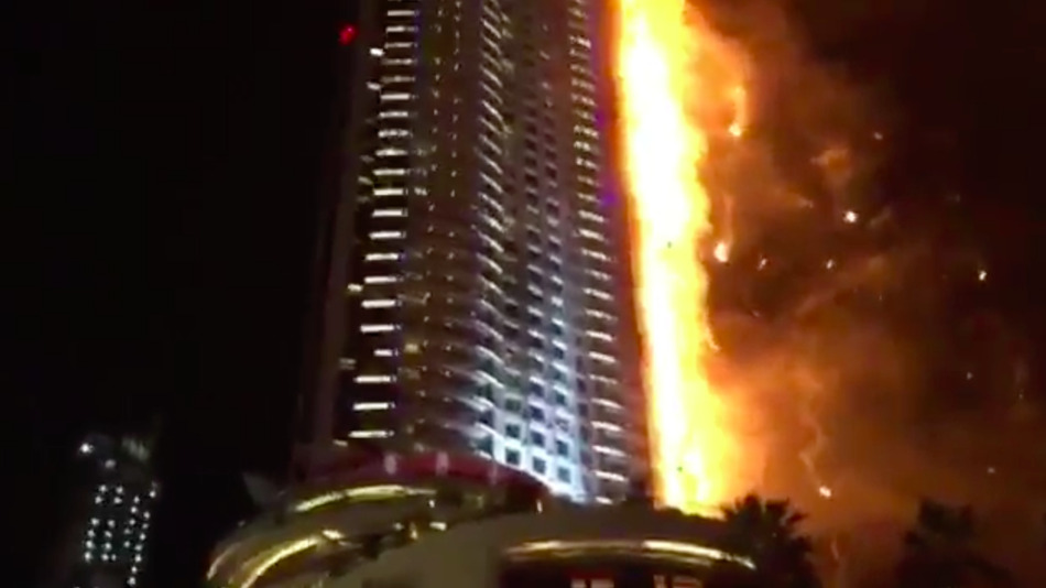 تصاویری که در شبکه توئیتر منتشر شدهاست نشان می دهند هتل آدرس داونتاون دوبی در شعلههای آتش میسوزد. این هتل پنج ستاره ۳۰۲ متر ارتفاع داشته و در فاصله کمی از محل برگزاری آتشبازی سال نوی میلادی قرار دارد.