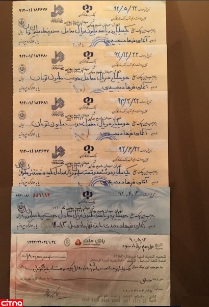 تصاویر چک هایی که فرهاد مجیدی در اینستاگرام منتشر کرد!