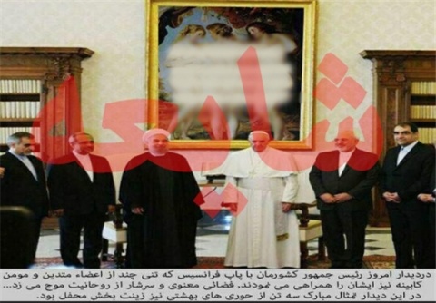پس از دیدار روحانی با پاپ فرانسیس تصویری در شبکههای اجتماعی منتشر شد که ادعا میکرد تابلوی نصب شده در این جلسه تمثالی برهنه از 3 حوری بهشتی بوده است.