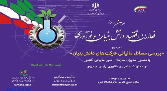 دومین «نشست هم اندیشی فعالان اقتصاد دانش بنیان و نوآوری» با محوریت مسائل مالیاتی شرکتهای دانش بنیان از سوی امور شرکتهای دانش بنیان و ستاد توسعه فرهنگ علم، فناوری و اقتصاد دانش بنیان معاونت علمی و فناوری ریاست جمهوری برگزار می شود.