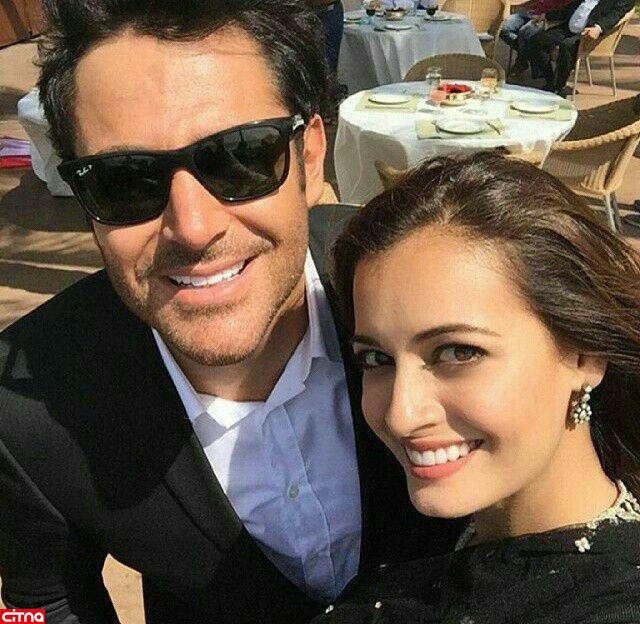 محمد رضا گلزار با دیا میرزا ستاره سینمایی هند در پشت صحنه فیلم سینمایی سلام بمبئی عکس انداخته اند.