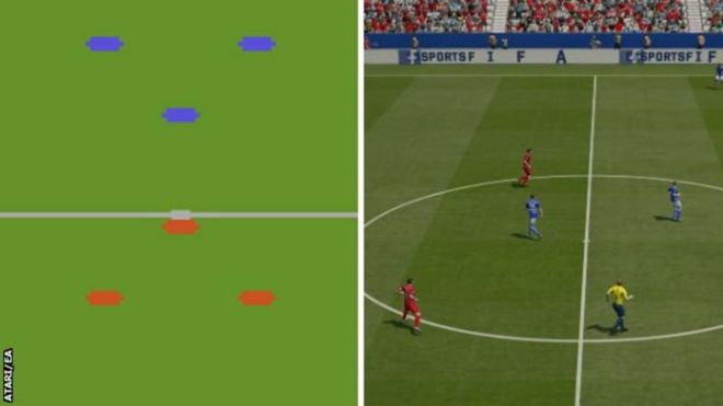 بازیهای کامپیوتری فوتبال طی ۳۷ سال گذشته پیشرفت زیادی کرده اند. در آغاز، آدمک های بازیها شبیه اسباب بازی چوب کبریتی بودند ولی امروزه کیفیت تصاویر و جلوه های ویژه ای که به کار می برند دست کمی از سینما ندارد.