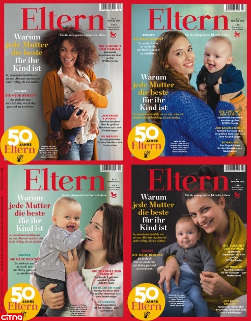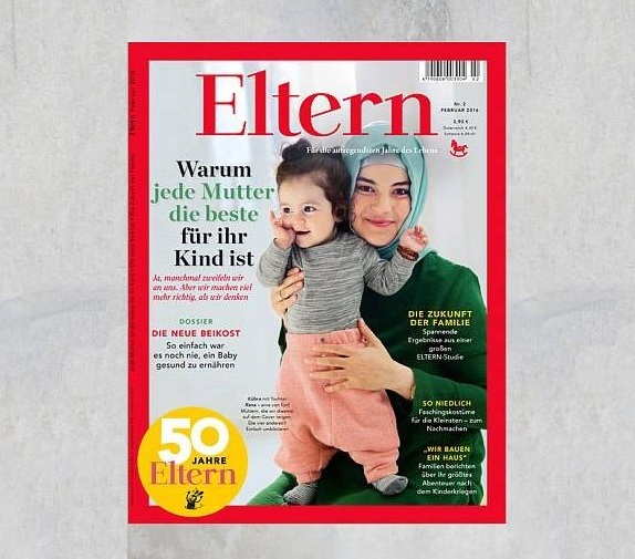 به گزارش سیتنا، مجله «والدین» (Eltern) ماهنامه تخصصی برای والدین است که از سال ۱۹۶۶ فعالیت دارد. این مجله به مناسبت پنجاهمین سالروز تأسیس خود، تصویر روی جلد ماهنامه را به ۵ مادر و فرزند اختصاص داد که در میان آنها یک زن جوان محجبه نیز با کودکش دیده میشود. عنوان مطلب مربوط به این عکس که در مجله آمده: «هر مادری، بهترین مادر برای فرزندِ خودش است.»