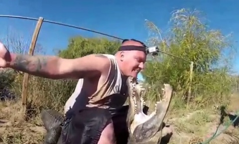 ویدئویی از تلاش یک مرد ماجراجو که سعی می کند با دوربین GoPro از دهان تمساح عکس بگیرد را ببینید.