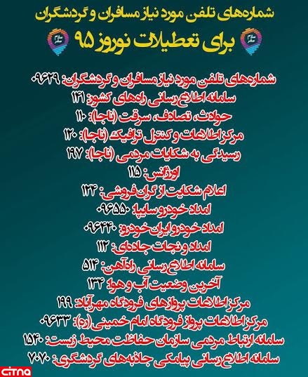 شماره تلفنهای مورد نیاز مسافران نوروز 95
